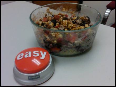 Note: I like my oatmeal warm and it also gives me an excuse to take a walk to the café microwave to stretch my legs.
