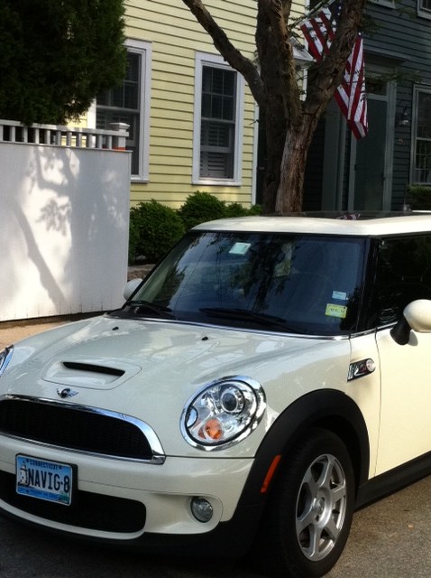 My Mini in front of my humble abode — notice the license plate; as I strive to help you “navig-8” your way to 4-Leaf eating in a “No-Leaf” world.