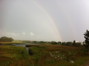 A lovely double rainbow over the saltwater marshes next to the vineyard as the party began. I will take that as a good thing.