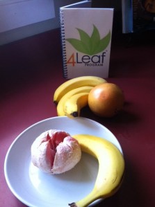 Breakfast. We started the day with an extremely simple 4-Leaf meal. How much easier does it get than one whole grapefruit and a banana? Jason peeled the grapefruit using just his hands — without losing any of the healthy portions of the fruit (See the healthy white stuff in the picture). I peeled my own banana and thoroughly enjoyed my first several hundred calories of Thanksgiving Day — and I didn’t need a reference book or a calculator to know that ALL of those calories were comprised of whole, plant-based foods, still in Nature’s package.
