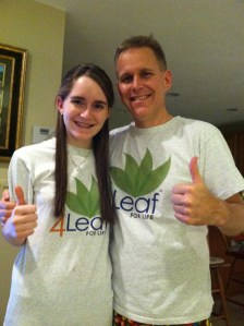 Just to clarify, Dawn is with me in the picture to the left and my daughter, Madison, is modeling the 4 Leaf t-shirt with me on the right. I had to laugh Barbara because I thought the same thing. My daughter came downstairs last night sporting the new 4Leaf t-shirt and brought mine down to put on for a picture with her. She LOVES the shirt and enjoys eating 4Leaf along with Dawn and me.