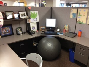 My son's office at work features a 4Leaf poster along with an exercise ball replacing the conventional office chair.