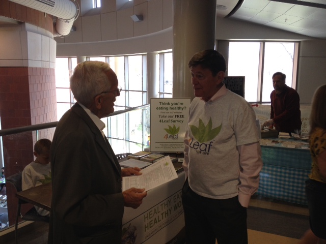 Dr. Campbell reviewing our 4Leaf Survey yesterday in Worcester--- before the VegFest began.