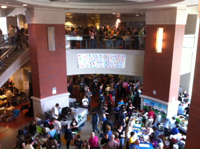 Dr. Campbell was a big hit at the VegFest. The man standing in the top right corner of the photo is the Holy Cross professor who invited me to speak at one of his classes in February. He reports that our book has made a big difference for him, his family and for many of his students.