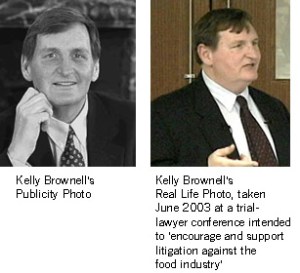 He sports a good-size paunch thanks, he says, to a book project that has kept him relatively sedentary and snack-prone for the last year or so. In photographs taken a few years back, Kelly Brownell looks much trimmer.