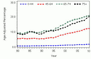 This chart from the CDC is incredible; clearly showing the dramatic rise of obesity in all age groups for the last 30 years.