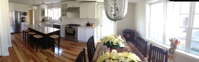 This particular Thanksgiving is very special—it will be our family’s first one in Lisa’s brand new 4Leaf Kitchen. With a new dining area next to the pellet stove and alongside the brand new row of windows overlooking the lovely outdoor recreation area.