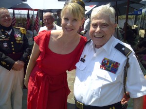 After singing, Karen poses for a photo with a veteran of the Normandy invasion.